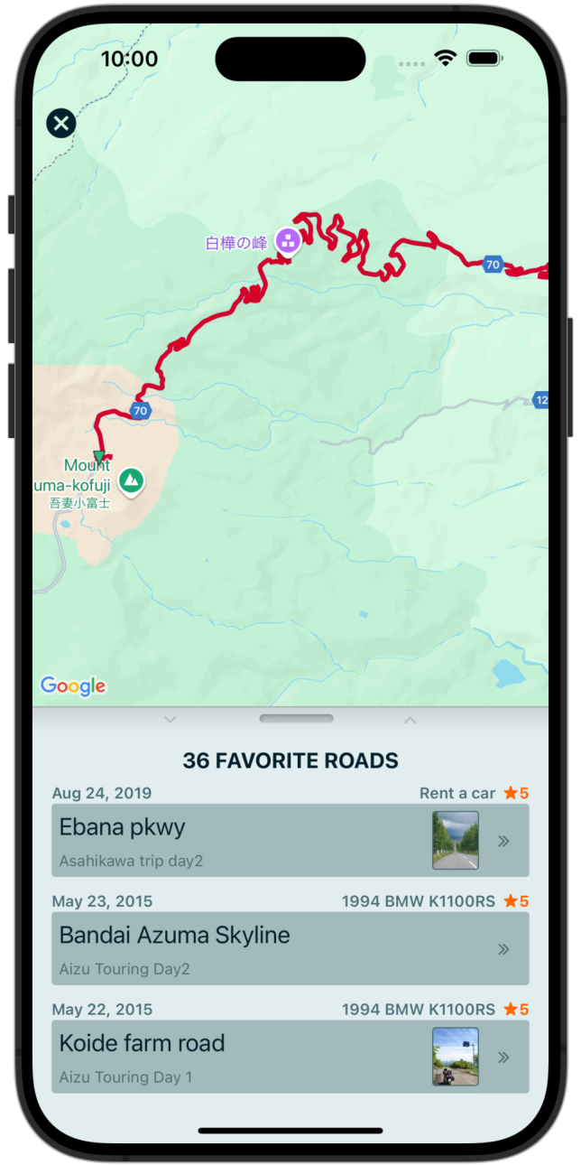 ROADSTOCK is an app specialized for motorcycles and cars. It cannot capture logs for bicycles or running (these activities are excluded via motion sensor).