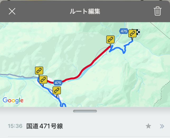 道路名とGPSログはリンクしていますので、道路名タップ→地図上の表示、またはその逆が可能です