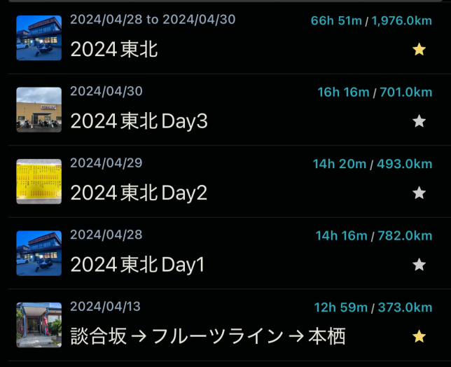 ツーリング時と通常時(非ツーリング時)の情報をまとめて管理します