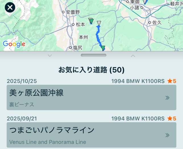 ツーリングのログをGPXファイルとしてエクスポートできます